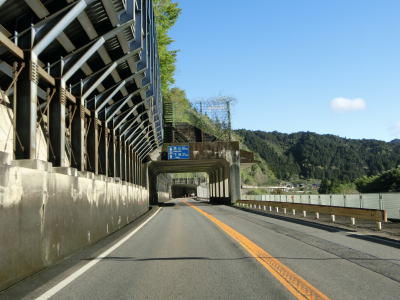 | 108.金山トンネル | 109.下原トンネル | 110.旧道との交差点を通過 |