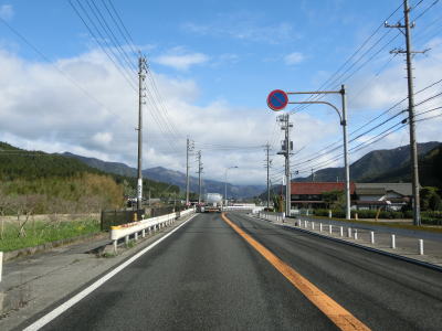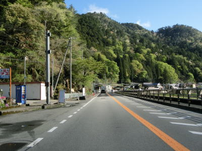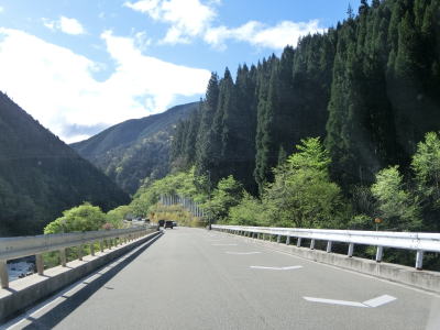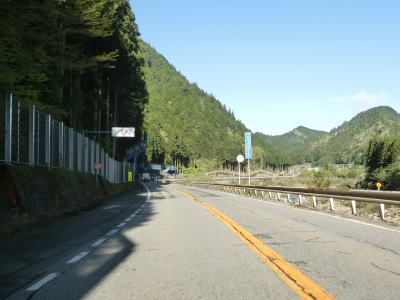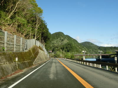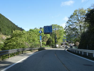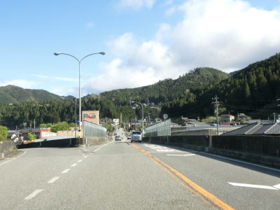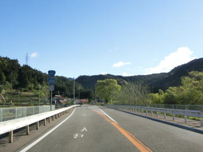 | 緩やかな左カーブを曲がって橋上を走っていると岐阜r440の側道が分岐する。r440の南向き車線の上を通過した先はガードレールが中央分離帯となっている片側1車線道路となるが、すぐに普通の対面2車線道路に戻る。緩やかな勾配を上り、奥道橋付近から沿線の建物が少なくなるが、西側には下呂市に市街地が広がっている。 | ||