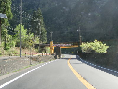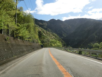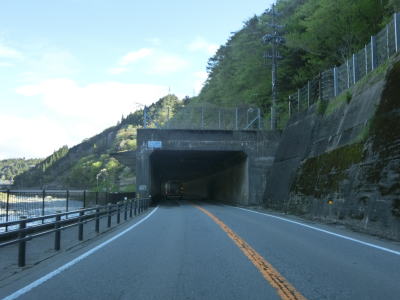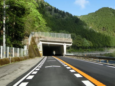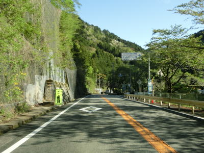 | 地蔵野洞門を過ぎると普通の対面2車線道路に戻り、右にカーブした先で中切洞門をくぐり、その後下原ダムの西側を通過する。ダムの下流域も前述の中山七里という風光明媚な渓谷を維持するため、下原ダムからは常時放流されているらしい。下原ダム湖の西側を走っていると三ッ渕集落を通過した後に三ッ渕洞門をくぐる。 | ||