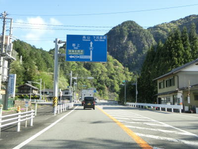 | 帯雲橋交差点からはR257が重複した状態で富山・高山方面に向かう。R257から来た車両が加わるせいか交通量が多くなるが、渋滞が発生するほどではなかった。ただし、紅葉期などは行楽客の車両が集中して渋滞が起こる事も多い区間である。飛騨川の左岸を走っていると沿線に建物が現れる。対岸にはJR高山本線と岐阜r88がある。 | ||