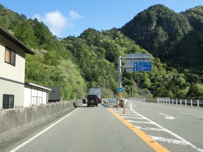 | 下呂トンネルを出た直後に市道との東上田交差点を通過するが、交差している市道はR41の旧道と思われる。飛騨川に沿って走っていると前方に瀬戸ダムが見える。瀬戸ダムの脇を通り過ぎると川から少し離れて集落を通り抜けるが、市の中心部ではないが沿線には商業施設が目立つ。東上田発電所付近で建物が途切れて飛騨川沿いとなり下呂洞門をくぐる。 | ||