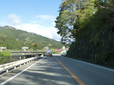 | 坂東橋西詰交差点からはR256が重複しているが、道路状況はもちろん周辺の風景にも特に変化は見られず、飛騨川沿いの2車線快走路が続いている。3つのロックシェッドを通過するが、それらの対岸にはJR高山本線の下油井駅がある。 | ||