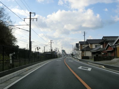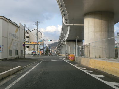 | 有田ICの白浜・湯浅方面ランプに合流してからは普通の対面2車線道路に戻る。なお、走行した日(2019年3月24日)は白浜・湯浅方面ランプが工事のため通行止であった。2018年10月1日から2019年4月26日までと約半年と結構長い期間だが、有田・金屋方面ランプは利用可能であった。 JR紀勢本線に沿った2車線道路を走っていると湯浅町に入るが、道路状況や周辺の風景には特に変化は見られない。和歌山r179交差点を通過してすぐに市道の高架橋の下で別の市道との森崎交差点を通過する。 |