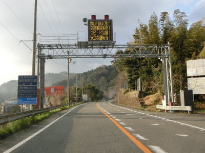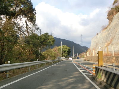 | 上り勾配の2車線道路を走っていると里隧道をくぐる。トンネルを出た直後に跨道橋の下を通るが、上にあるのは和歌山r23であり、R42の旧道に該当する区間である。その後も勾配を上り続けていると由良隧道をくぐって日高町に入る。 | ||