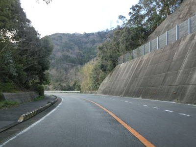 | 井関橋を渡り終えると左カーブを曲がって上り勾配になった2車線道路を走る。広川町と由良町の境の前後は異常気象時通行規制区間に指定されており、連続雨量が240mmを超えると通行止になる。急勾配かつ急カーブの多い峠道だが、二桁国道とあってセンターライン付きの2車線道路と比較的整備されている。 | ||