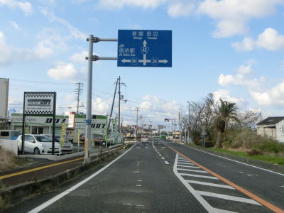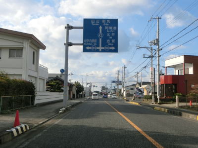 | 広川に架かる新広橋を渡ると広川町に入り、和歌山r178広交差点を通過する。湯浅町と同様に広川町も町の中心部は通っておらず、広交差点が出入口に当たる。大きく左に曲がっていると名島交差点を通過する。交差している町道はr178の旧道だが、案内標識には未だヘキサが表記されていた。 | ||