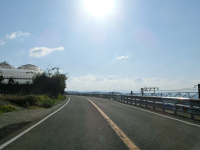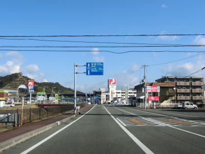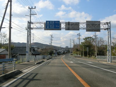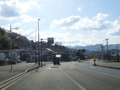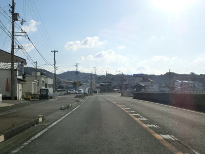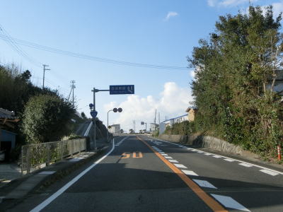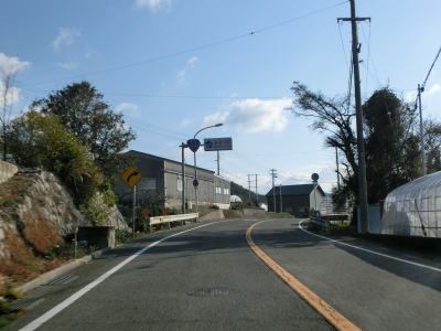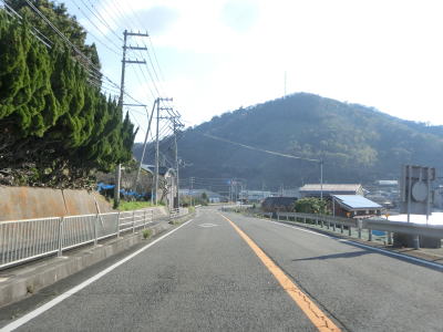 | アップダウンを繰り返す2車線道路を淡々と走る。二桁幹線国道だが交通量は少なくハイペースで流れている。周囲には集落が断続的に続いているが、集落のど真ん中を通っていない区間もあり、それを通り抜けている市道が旧道だと思われる。集落が途切れた所で市町境を通過して印南町に入り、すぐに最初の集落を通り抜ける。 | ||
