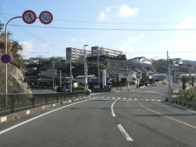 | 緩やかに右にカーブしながら勾配を上っているとJR紀勢本線をオーバーパスして緩やかな勾配を下る。朝来駅に近く上富田町の中心部と言える場所を走っているため沿線の建物は多く、歩道のない区間もあり若干の狭苦しさを感じる。馬川と紀勢本線に挟まれた状態を走っているとR311岩崎交差点を通過する。R425と同様にR311も紀伊半島を横断する国道だが、酷道であるR425とは異なりR311は山間部ながら概ね走りやすい道路状況である。案内標識には直進のR42に新宮が表記されているが、R311→R168というルートを走った方がより短く早く着ける。 | ||
