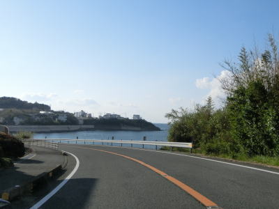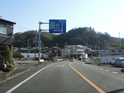| R425塩屋交差点からも2車線道路が続いている。交差点のすぐ先の案内標識には新宮市と田辺市までの距離が表記されているが、後者は32kmと普通だが、前者は150kmとかなり離れている。塩屋漁港で右にカーブした後に左の急カーブを曲がる。左カーブには市道(?)が接続しており、そちらに進むと御坊発電所がある。その後は海岸線から少し内陸に入った所を走っている。 | ||