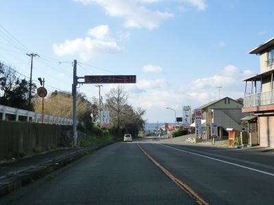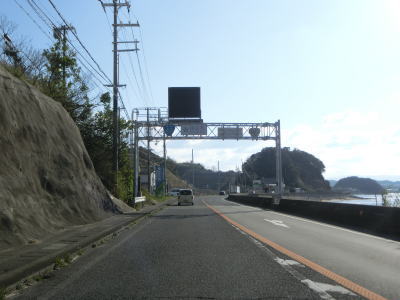 | 田辺西バイパスとの接続予定地点を通り過ぎ、海沿いの2車線道路を淡々と走る。交通量は若干増えているが、流れは比較的スムースである。田辺市に入ってから約800mで大屋隧道をくぐり、程なくして新松井橋を渡る。 | ||