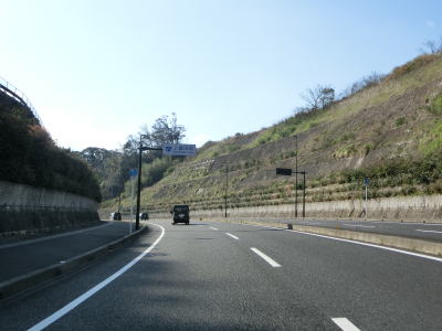 | 113.登坂車線あり | 114.防潮堤があるので海が見えない | 115.左にはJR紀勢本線 |