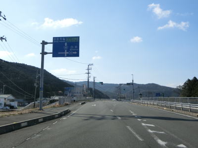 | 志原橋を渡って程なくして道の駅「志原海岸」を通過する。道の駅の海側に和歌山r801=白浜日置川自転車道線があるが、この区間はR42の旧道には該当しない。町道との町役場交差点を道なりに左方向へと進む。日置川町は2006年に隣接していた白浜町と合併しており、町役場は白浜町役場日置川事務所となっているが、交差点の名称は変更されていない。ただし、英語では「Hikigawa