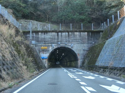 Branch Office」と変更が加えられている。 町役場交差点から程なくして寺山隧道をくぐり、左カーブを曲がって少し走ると次の海蔵寺隧道をくぐる。2つのトンネルの南には旧日置川町の中心部がある事からバイパスとして造られた区間と思われる。 |