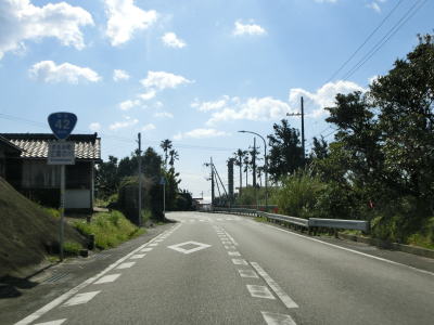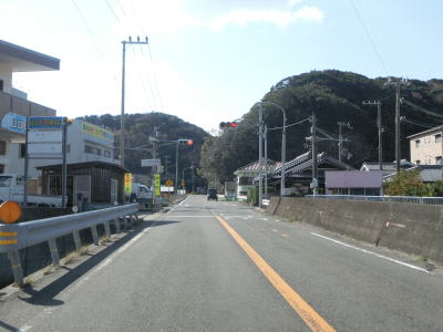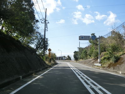 | 潮岬を見ながら海沿いを走っていると高富集落に差し掛かり、その中でR371高富交差点を通過する。R311岩崎交差点からの距離は約60kmであり、本州で最も南に位置する国道同士の交差点である。 | ||