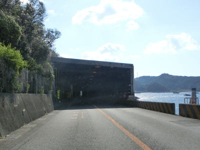 | 有田交差点から緩やかな勾配を上っていると逢坂山隧道をくぐり、左にカーブしている下り勾配を走っていると串本海中公園を通過する。通行したのが3月なのでさほど車は停まっていなかったが、夏季は賑わっているのだろう。カーブを繰り返す2車線道路を走っていると高浜隧道をくぐる。 | ||