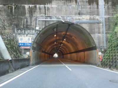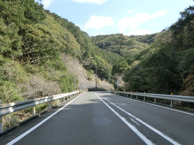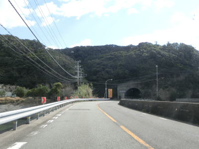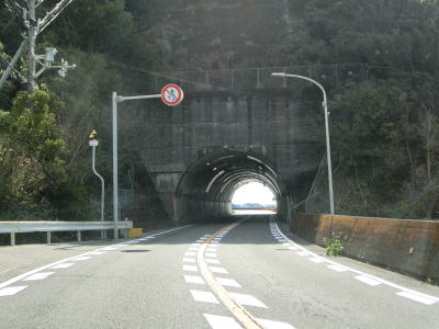 | 和深隧道を出てからしばらくはほぼ平坦な状態を走るが、下り勾配になると前方に海が良く見えるようになる。JR紀勢本線のトンネルの上を通過するとR42が海寄りを走るようになる。適度なアップダウンとカーブを繰り返す2車線道路を快走する。田子駅の南を通過してさらに走っていると富山隧道をくぐる。 | ||