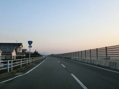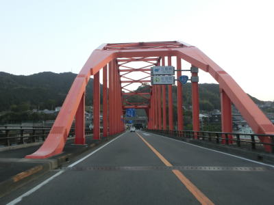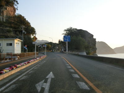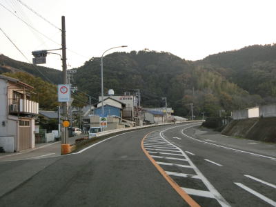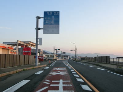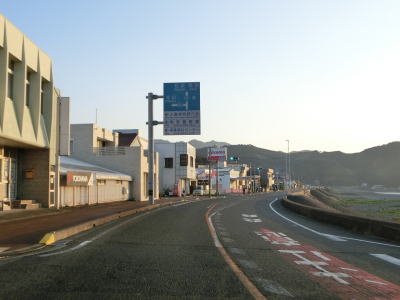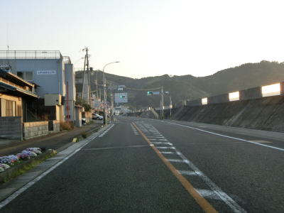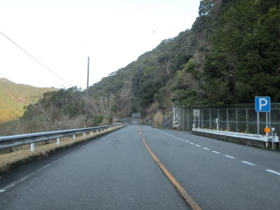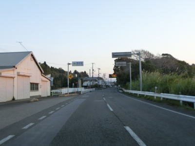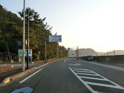 | 道の駅から約400m走ると町境を通過して御浜町に入るが、道路状況や周辺の様子に変化は見られない。海沿いの2車線道路を快走していると緩やかな右カーブを曲がった後に阿田和橋を渡る。 | ||