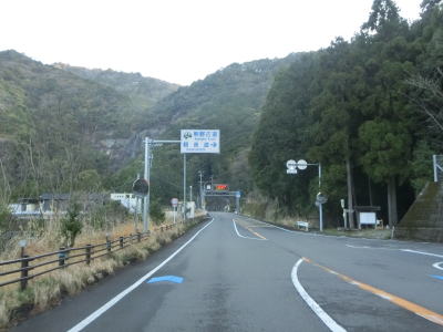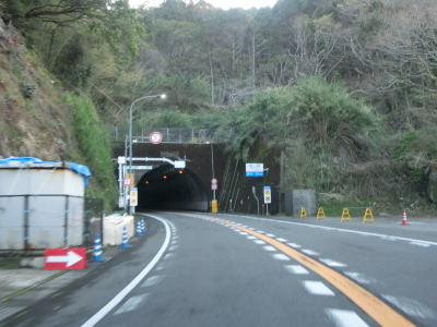 | 熊野市役所の近くで熊野市駅口交差点を通過する。一見すると三重r204との交差点に見えるが、交差しているのは市道である、r204はR42に並走するようなルートとなっている。市街地の端で右にカーブしながら勾配を上り、西郷川橋を渡った先で鬼ヶ城トンネルをくぐる。鬼ヶ城トンネルは歩行者や軽車両の通行が禁止されており、北にある鬼ヶ城歩道トンネルを通る事になる。歩道トンネルを名乗っているものの4輪車も通行可能である(ただし、尾鷲方向への一方通行)。 | ||