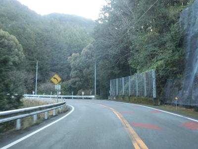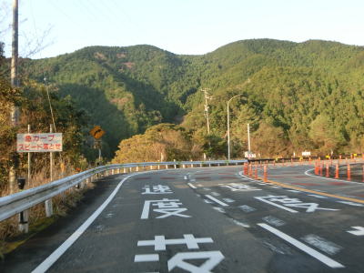 | カーブの多い急勾配の上り勾配の2車線道路を走る。制限速度は40km/hに設定されているが、安全速度は場所によって25〜35km/hで設定されている。上り勾配となり北向き車線は追越しのための右側部分はみだし通行が可能だが、カーブが多く見通しが悪いためおいそれと前走車を追い抜く気にはならない。もっとも、以前は大型トラックを含めた交通量の多い峠道だったが、熊野尾鷲道路が供用されて以降は交通量が激減している。 | ||