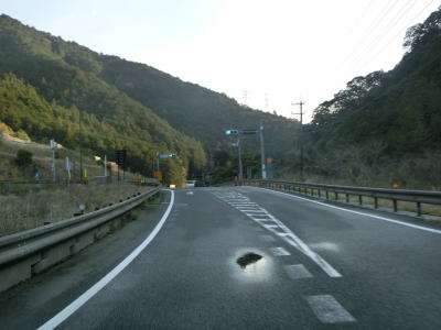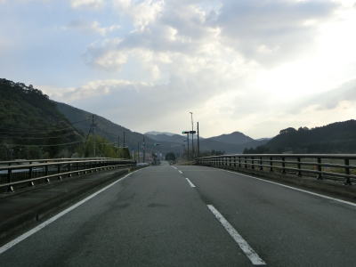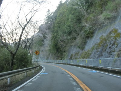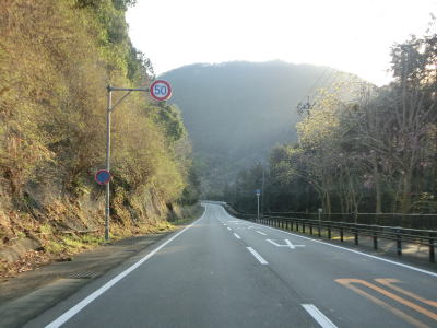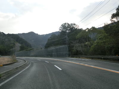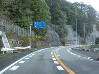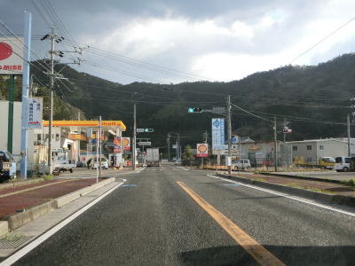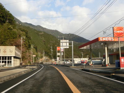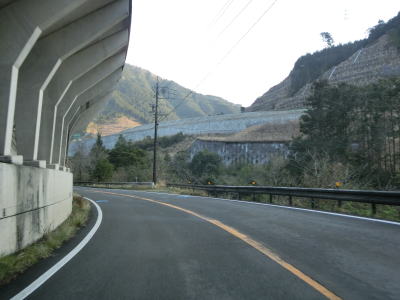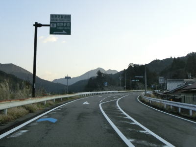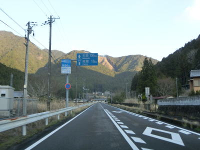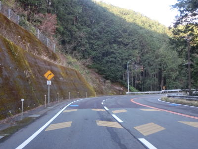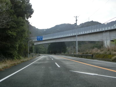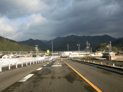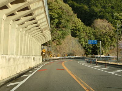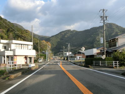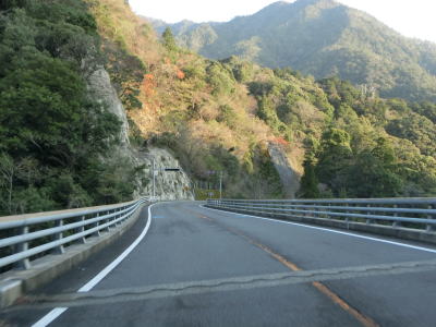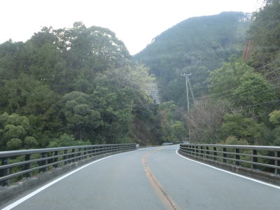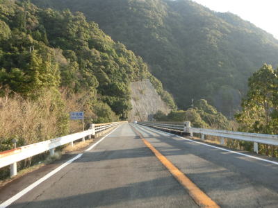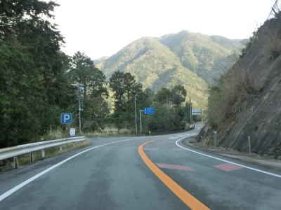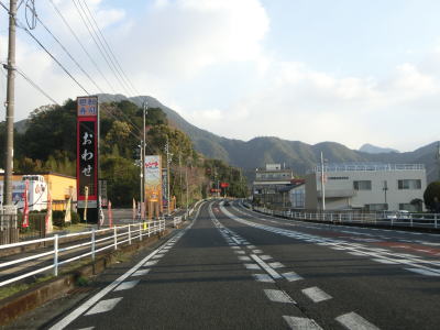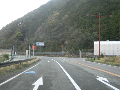 | 小阪交差点から約3.9kmで道の駅「熊野きのくに」を通過する。山間部にある小さな道の駅で駐車場は20台しかない(乗用車は17台)。道の駅を通り過ぎてからも大又川沿いが続いており、多少急なカーブもあるが交通量がほとんどないせいもあって走りにくさはほとんど感じない。 | ||