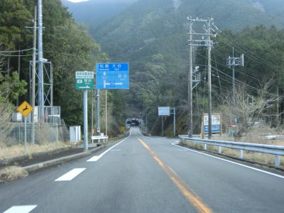 | 389.複数の落石あり | 390.異常気象時通行規制区間に入る | 391.大又川沿いは続いている |