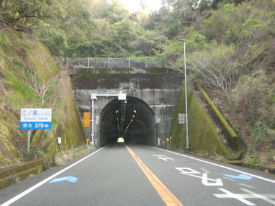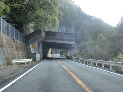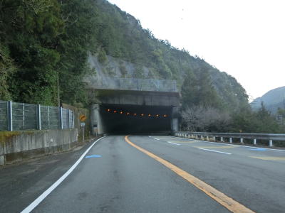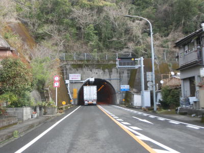 | 紀勢道とJR紀勢本線の間で三船トンネルをくぐる。紀勢道、紀勢本線どちらもトンネルが掘られており、紀勢道は始神トンネル、紀勢本線は三浦トンネルという名称であり、R42を含めた3つのトンネルがそれぞれ異なる名称である。 三船トンネルからは紀勢本線と並走しながら谷筋を緩やかに下って行く。右カーブを曲がった先で紀勢本線のガードをくぐり、程なくして大瀬川の河口付近の海沿いを走る。緩やかな左カーブを曲がって海から離れた後に三野瀬駅付近で右にカーブした後に道瀬トンネルをくぐる。南に隣接している道瀬歩道トンネルはおそらく旧トンネルと思われる。 |
