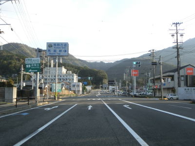 | 新矢ノ川橋西交差点を通過した直後に車線が増えて4車線道路になる。緩やかな下り勾配と緩やかなカーブの4車線道路を走っていると尾鷲市の市街地に近付くが、市街地そのものはR42の東のJR紀勢本線よりも東にあり、沿線には商業施設が中心である。 | ||