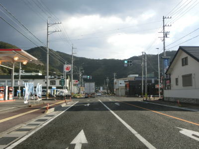 | 410.新矢ノ川橋西交差点からは4車線道路 | 411.尾鷲市の市街地に差し掛かる | 412.尾鷲病院前交差点 |