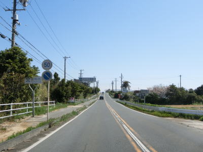 | 吹出橋を渡った直後に道の駅「あかばねロコステーション」を通過するが、道の駅に行くには市道(?)を300m程走らなければならない。道の駅を過ぎてからは緩やかな上り勾配の2車線道路を走り、ほぼ平坦になった所で愛知r419中村交差点を通過する。約500m進むと愛知r416赤羽根東交差点を通過する。r419もr416もR259とを結んでいる県道だが、r416は内陸に入った地点でR259と交差しているため渥美半島を横断しているとは言えない。 | ||