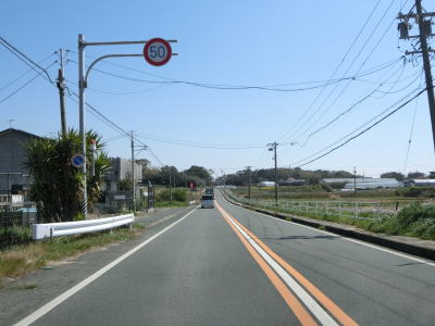 | 高松一色交差点を過ぎてからはカーブが少なくなるためさらに走りやすくなる。2車線快走路を走っていると愛知r414大草交差点を通過するが、その直後は掘割を走るがそれを過ぎれば見通しの良い状態になる。沿線には相変わらず家屋よりも畑の割合が多い。 | ||