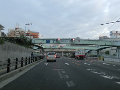 | 4.右の2車線が北津守入口の進入用車線 | 5.大正東出口合流後は片側2車線 | 6.大阪r173泉尾交差点 |