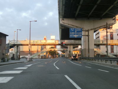 | 19.兵庫県尼崎市に入る | 20.再び阪神高速に覆われる | 21.尼崎料金所付近 |