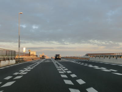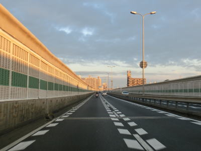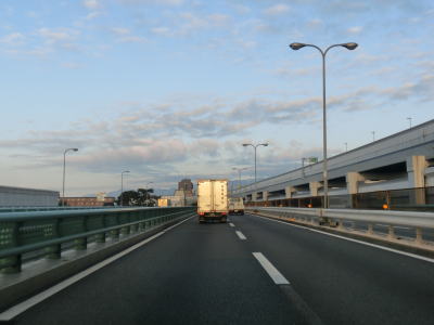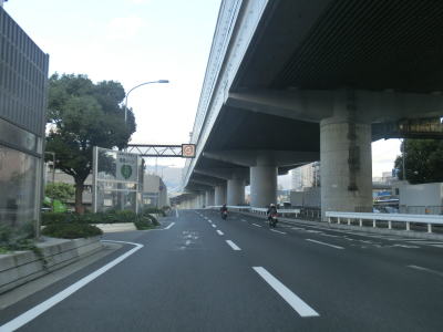 | 13.安治川大橋の南は片側2車線 | 14.安治川出口合流後は片側4車線 | 15.右2車線がそのまま高架道路になる |
