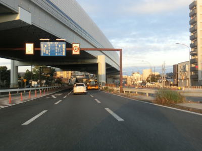 | 7.僅かな距離だけ片側3車線 | 8.橋を渡るのは2車線だけ | 9.右側車線は大正西入口 |