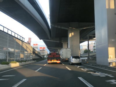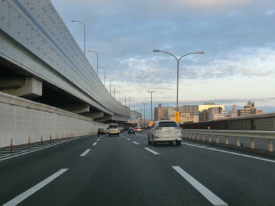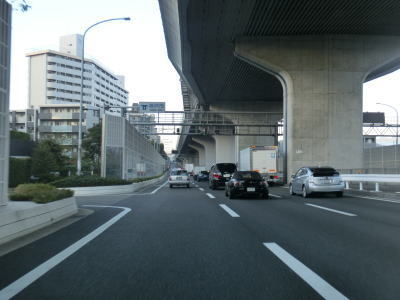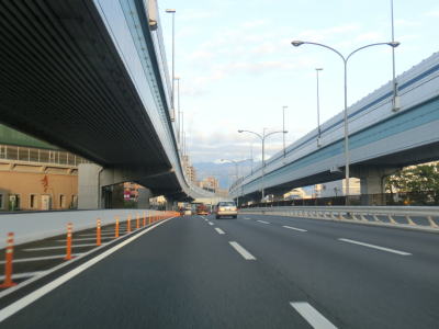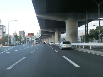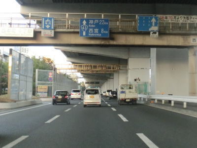 | 25.左側には甲子園球場がある | 26.西宮JCTの下を通過 | 27.環境レーンと称して大型車に中央寄りの走行を推奨 |