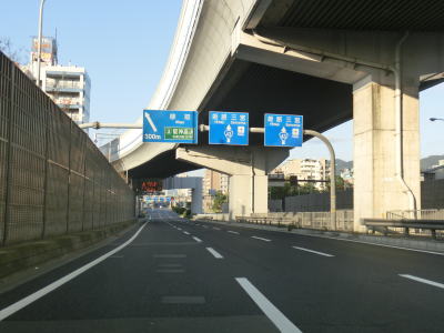 | 西宮JCT以降も交通量の多い片側3車線道路が続いている。立体交差点は少なく信号機のある平面交差点が多く、速度抑制のためか信号のタイミングが悪く交通量が少ない場合でも流れが悪くなる事が多い。道路構造上は60km/で走っても問題なさそうであるが、周辺の住環境を悪化させないために40km/hと低い制限速度が設けられている。律儀に制限速度で走っている車両は少ないが、オービスが多めに設置されている点に注意を要する。芦屋市を経て神戸市東灘区に入っても同じような道路状況と風景が続く。 | ||
