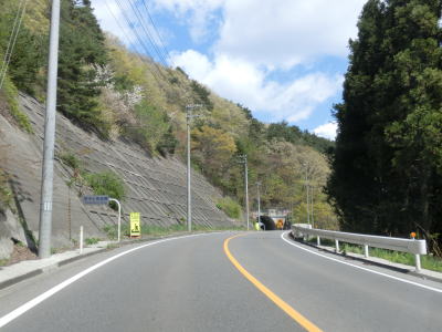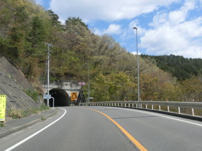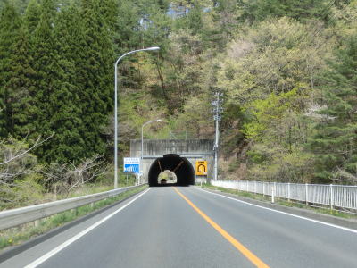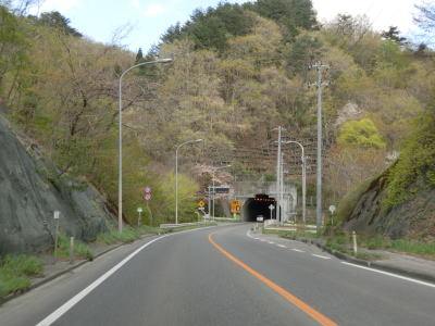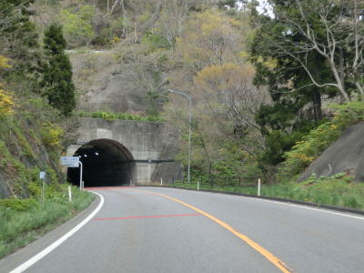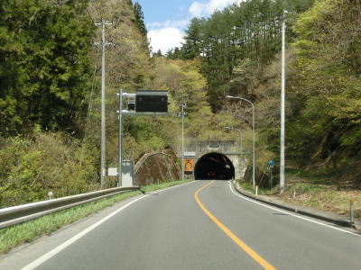 | 崎山交差点からは沿線の家屋が少なくなる。2車線道路を走っていると宮古第一トンネル、宮古第二トンネル、宮古第三トンネル、宮古第四トンネルを連続して通過する。トンネル間の距離は短くそれぞれ川が流れている。最も長い第四トンネルの延長が500m強であり、短いトンネルが連続している感じである。 | ||