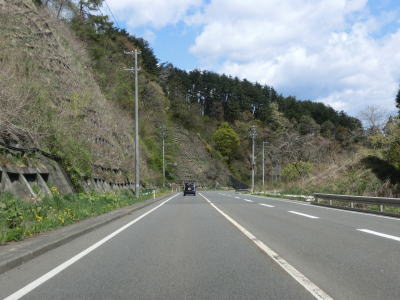 | 上り勾配を走っていると登坂車線が現れるが、その区間内には右に左に急なカーブが多い。急カーブが落ち着いた所でR45三陸道が建設されている現場を横切る。R45の上を通過するのだろうが、ここには田老第1IC(仮称)(気仙沼方面とのみ接続)が設置される計画である。インター建設予定地点からは適度なアップダウンとカーブを繰り返す2車線快走路を走る。 | ||