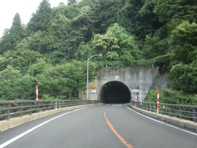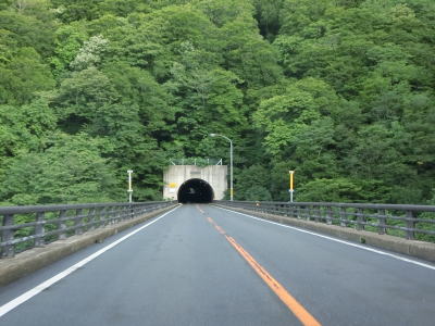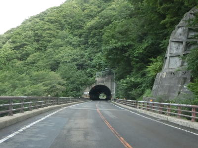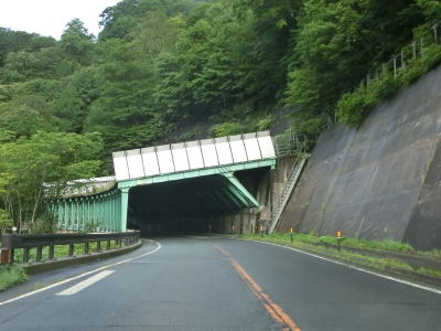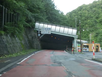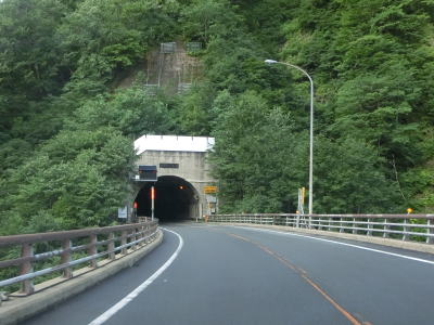| 下晩鳥橋を渡って少し走ると全長2544mの仙岩トンネルをくぐって秋田県仙北市に入る。トンネルは直線だが勾配が変化しているため向こう側の坑口まで見通す事ができない。トンネルを出てすぐにスノーシェッドをくぐり、大平沢橋を渡って次の大平トンネルをくぐる。 | ||