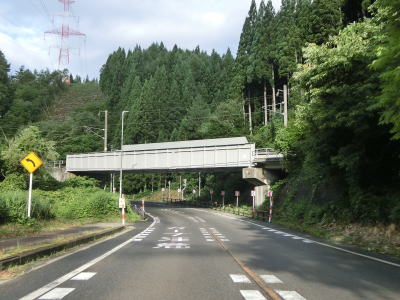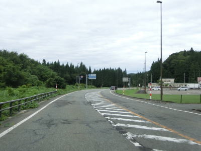 | 改良工事区間の中で市道(仙北北部広域農道?)との交差点を通過するが、この交差点の手前は舗装も新しくなっていた。工事区間が終わってからも走りやすい道路状況が続いている。公衆トイレも何もないが比較的広い駐車帯があるが、出入口が塞がれており利用できなくなっていた。 | ||