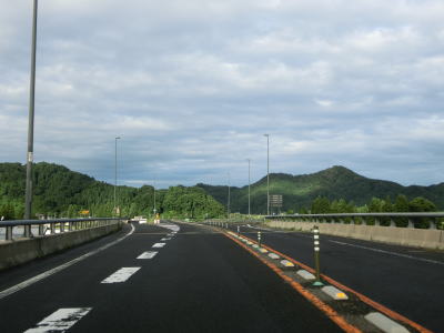 | 船岡交差点以降は上り勾配になると同時に沿線の家屋が途切れる。登坂車線が設置されているが、その延長は900m程度である。さらに進むと反対側の東向き車線にも延長600m程度の登坂車線が設置されており、それらの間のセンターライン上にはラバーポールが設置されている。 | ||