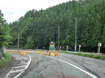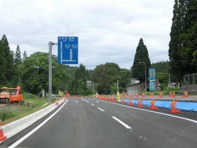 | 緩やかなアップダウンを繰り返す2車線道路を走っていると改良工事の現場に差し掛かる。工事区間の延長は長く、おそらくどちらの車線も追越車線なり譲り車線なりが設置されるものと思われる。一部は上下線で高低差が生じる可能性がある。 | ||