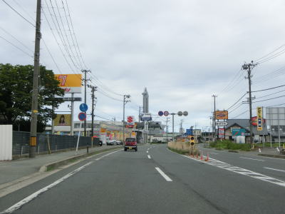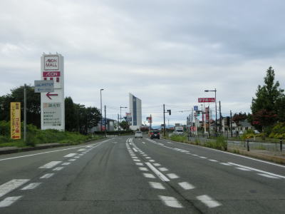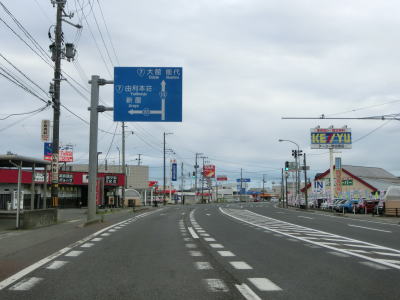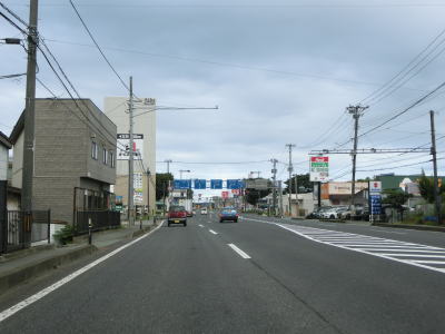 | 秋田南ICからも片側2車線道路が続いており、秋田市の中心部に向かっているとあって交通量は多い。御所野団地交差点の周辺には住宅地の他に大規模な商業施設も複数存在している。 | ||