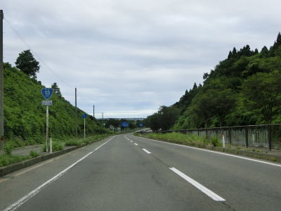 | 沿線の家屋が途切れた状態を走っていると細越を越えて大仙市に入る。大仙市側の勾配もカーブも緩やかで走りやすい道路状況である。東向き車線側の駐車帯、西向き車線側の駐車帯を通り過ぎて秋田r252交差点を通過する。 | ||