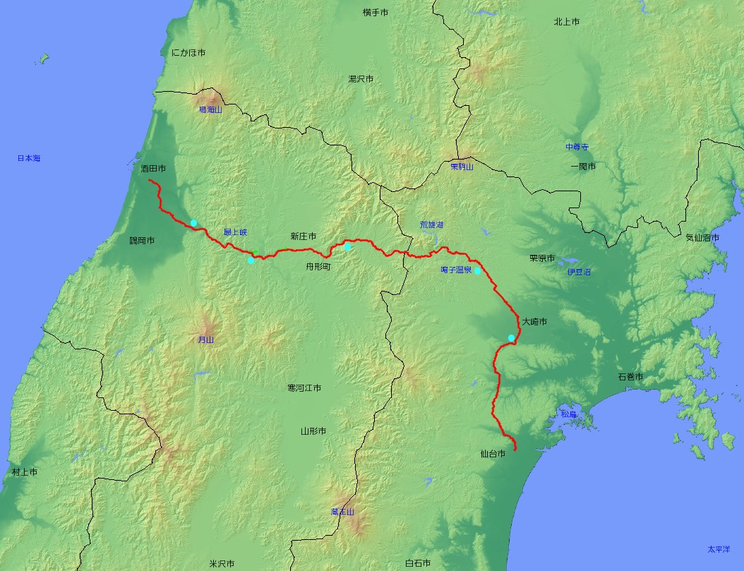 | 主な経由地 | 宮城県仙台市〜大崎市〜 〜山形県舟形町〜新庄市〜酒田市 |