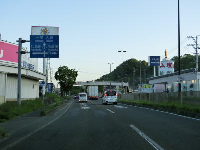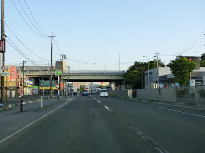 | 沿線に商業施設が建ち並ぶ間をほぼ平坦な片側2車線道路で走る。一桁幹線国道と重複しているせいもあって早朝にもかかわらず交通量は多い。緩やかな右カーブを曲がって和泉大橋を渡った後に宮城r35交差点を通過する。 | ||