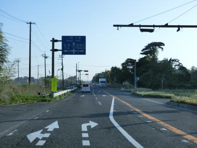 | 河原交差点を過ぎると西側で拡幅(おそらく多車線化)工事が行われているが、場所によっては東側でも工事をしていた。完了するまでの間は進捗具合によって車線が切り替わる場所が出てくると思われる。川(用水路?)を渡って大崎市に入ると拡幅工事区間が終わる。 | ||