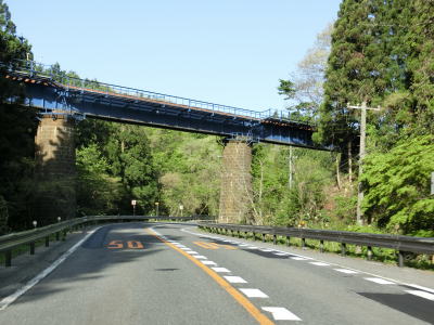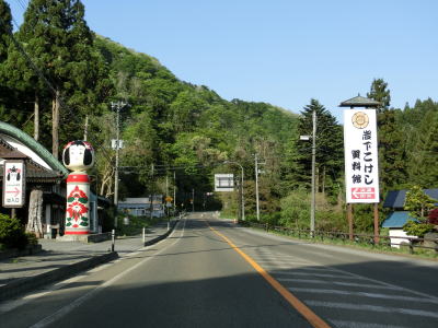 | R108花渕山バイパスとの交差点を過ぎるとやや急な右カーブを曲がりながら大谷川橋を渡る。6%勾配の警戒標識が設置されているが、そこまで急な勾配には思えなかった。また、鳴子は温泉だけでなくこけしも有名で資料館のようなものが複数存在している。 | ||