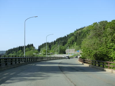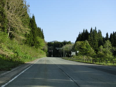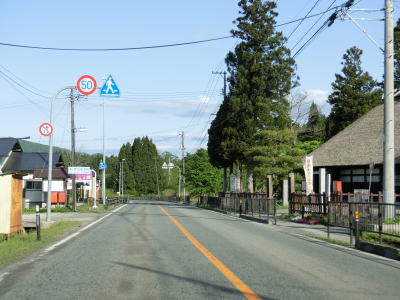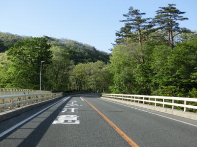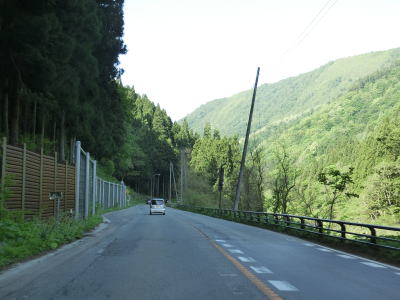 | 鳴子峡を抜けると中山平温泉に差し掛かる。ここも山間部の割に温泉関連の施設が多数あり、西部にはJR陸羽東線の中山平温泉駅もある。温泉を通り抜けると下り6%勾配区間があるが、鳴子峡の西側の6%勾配区間よりも急なように感じた。 | ||