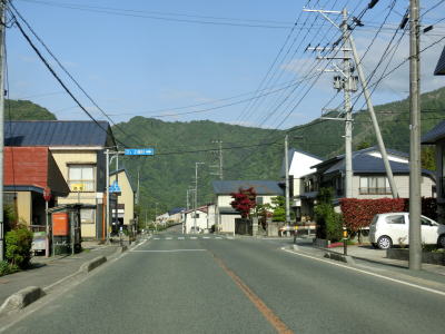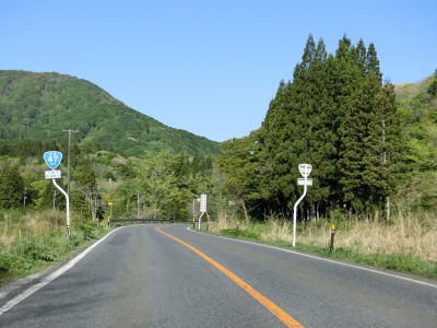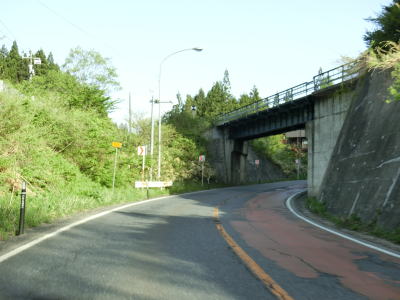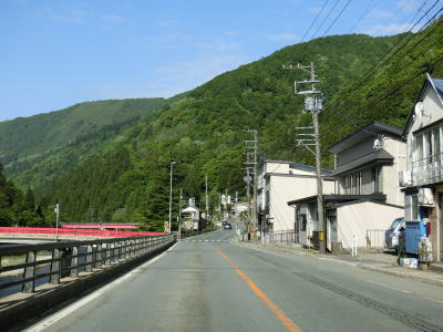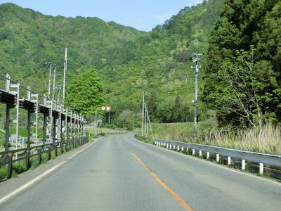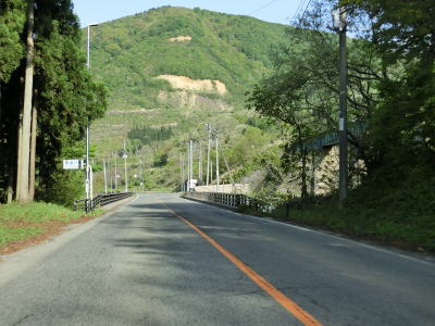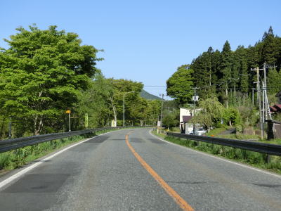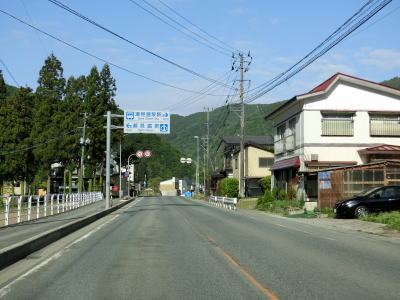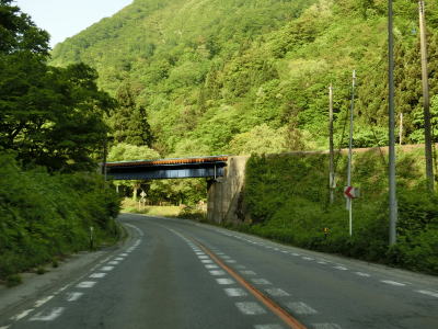 | JR陸羽東線と小国川を挟むようにして並走していると左岸に移ってきた陸羽東線の跨道橋をくぐり、その先で舟形町に入る。舟形町に入ってからも谷筋を走るが、センターライン付きの2車線道路のため走りにくさはほとんど感じない。 | ||